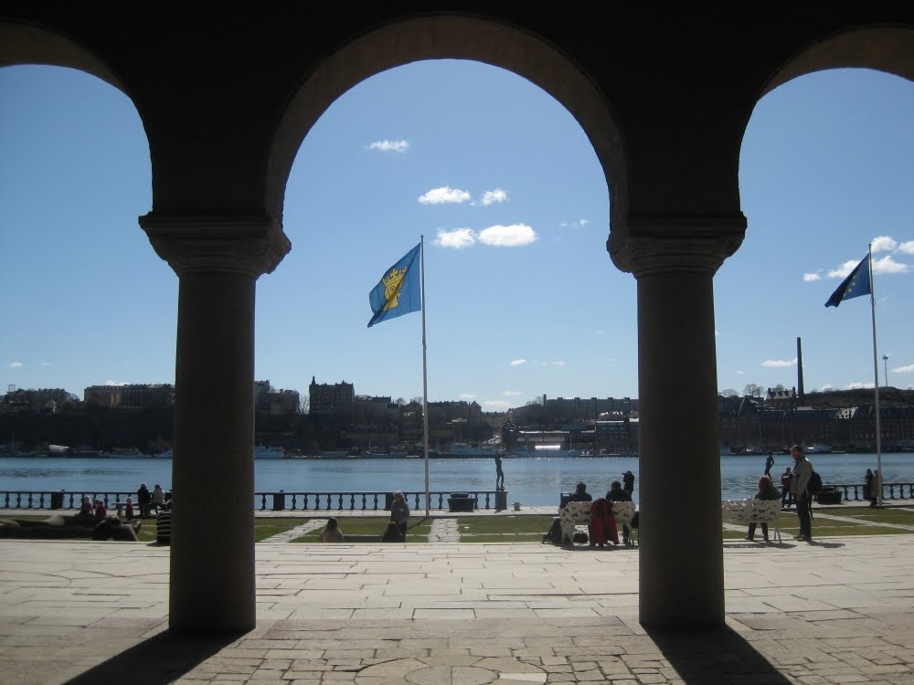 The 106 meter tall tower offers a good view of Stockholm, the national coat of arms adorns him with the three Swedish crowns . you I find that many of Stockholm's use their lunch break to rest on the terrace and the park and enjoy the sun - like me. :-)